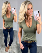 BASIC SHORT SLEEVE DEEP V-NECK TEE - OLIVE