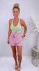 – Pull-on shorts in a woven challis fabrication featuring a high paperbag waistline