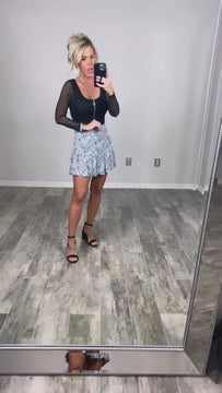 Floral Skort - Fabric is Non-stretch - Two-Tiered Skirt Exterior, Hidden Shorts underneath - Elastic Stretch Fit Waistband